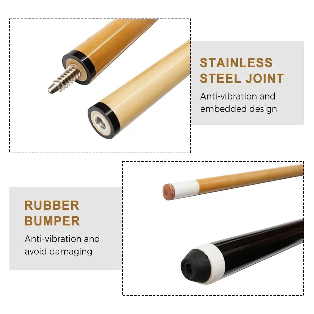 Billiards Cue — Adult’s Pool Stick Whitewood Rear Fork Design, 1/2 Split, Suitable for Home and Bar, Accurate and Straight