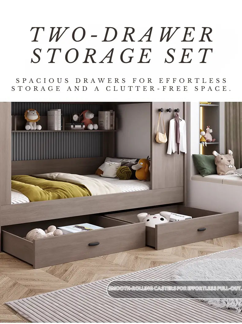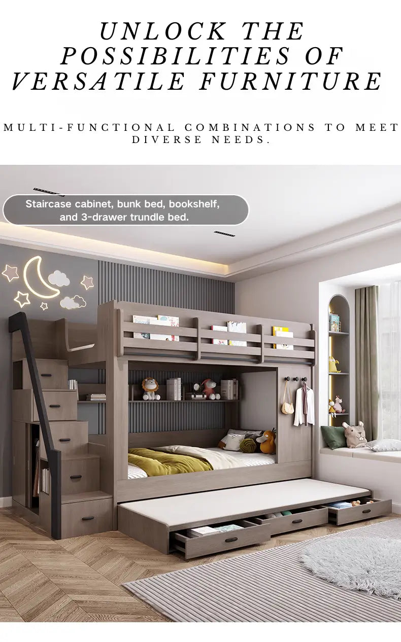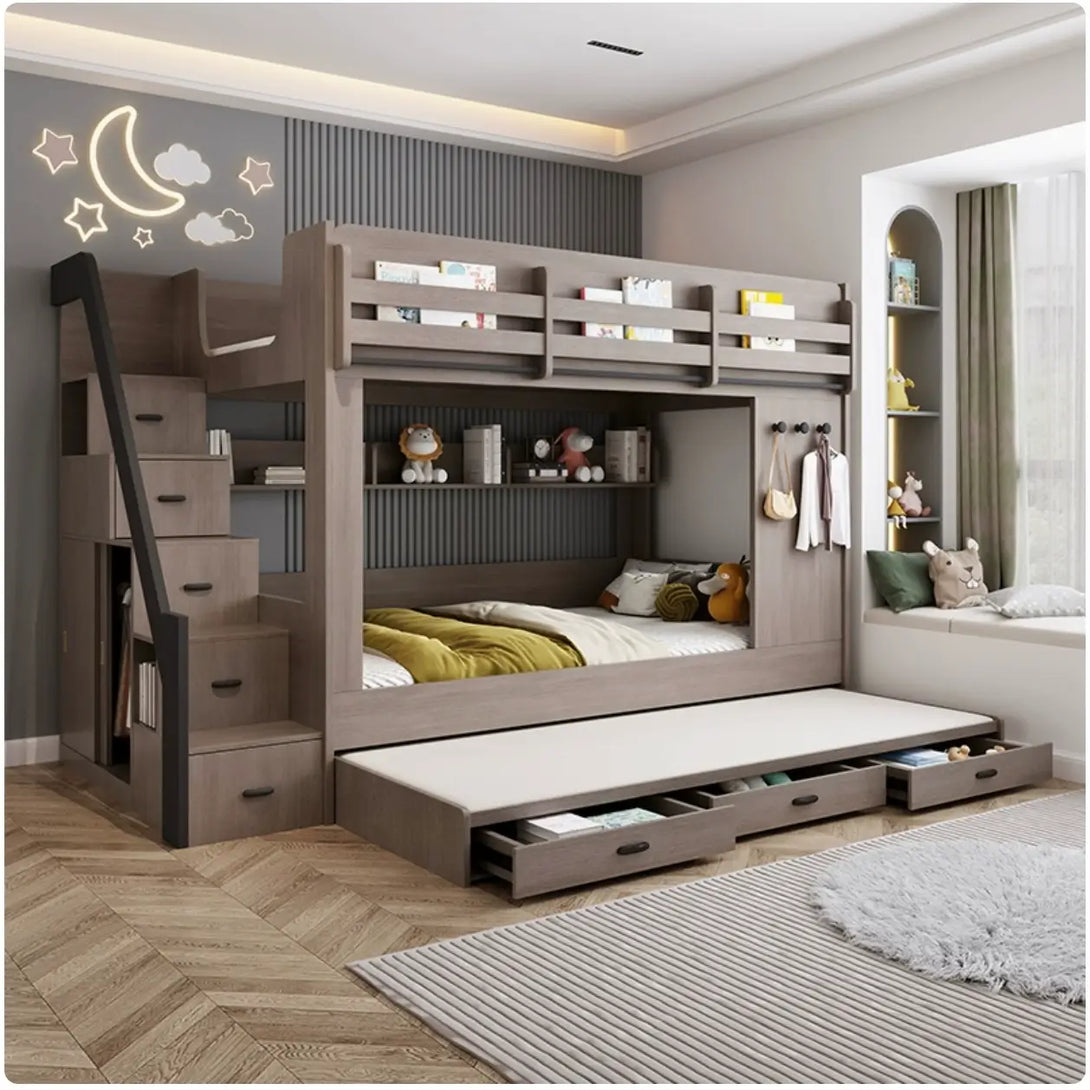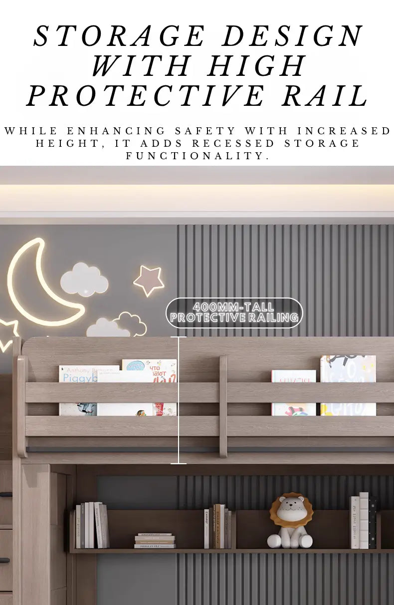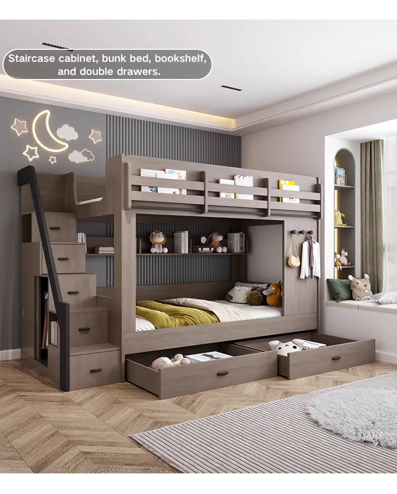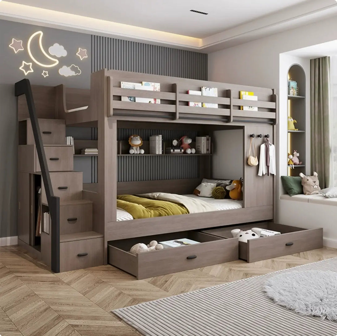 The DreamSteps1 Loft Bed with Storage Staircase is the perfect space‑saving solution for families, offering a double bed on both the top and bottom for generous, equal‑width sleeping space.