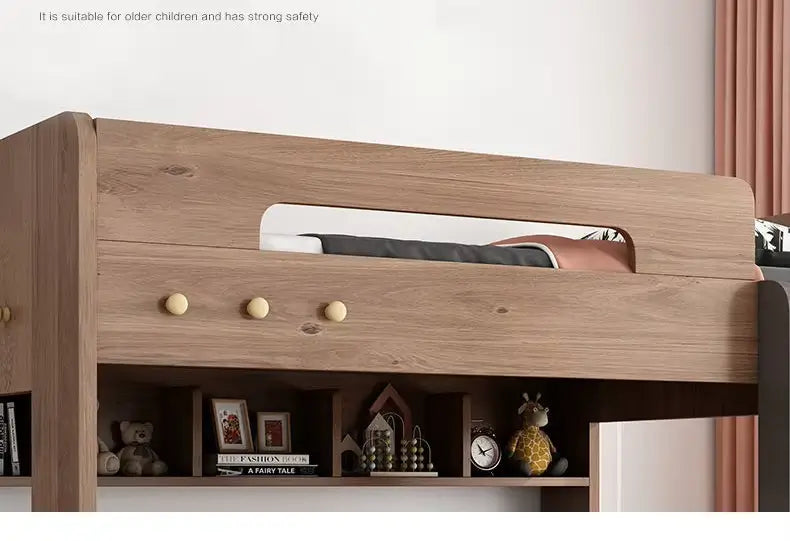 Combining timeless style with enhanced safety, it features kid‑friendly rounded edges and classic spindle details. The built‑in storage staircase includes handy plastic tubs, ideal for neatly organising toys, clothes, or everyday essentials — keeping the bedroom tidy and clutter‑free.